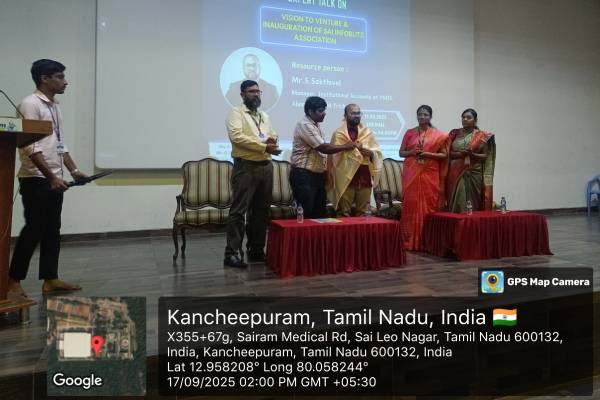 Association Inauguration – SAI INFOBLITZ & Expert Talk on “Vision to Venture” for M.Tech (5 Years Integrated) Students on 17-09-2025 at SSR Hall.