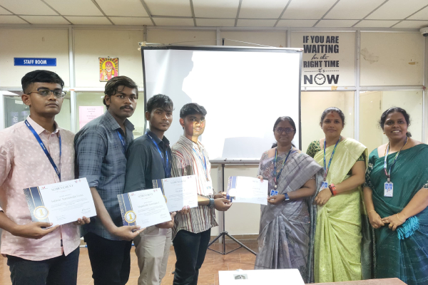 Congratulations to Aadithya S J, Lokesh C M, Shreya R, and Lakshitha B for winning the First Prize of ₹15,000 at the 36-hour hackathon Xyntra’25, conducted by the IEEE CS Society of Rajalakshmi Engineering College on April 12th and 13th!