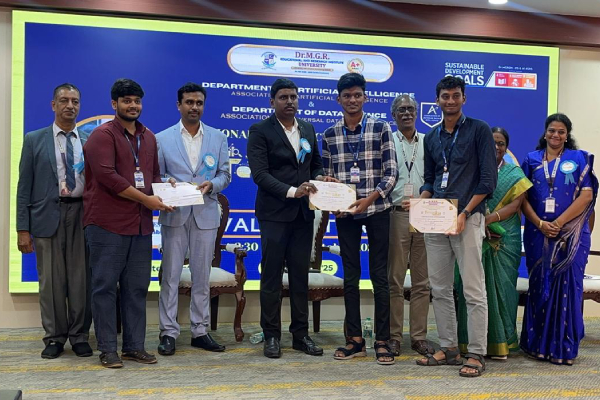 Congratulations to the Department of M.Tech Computer Science and Engineering 3rd year students (2022-2027) A. Rishi Vel, R. L. Sabari, G. Hasumathi Lakshmi,Divya Sri M, securing 2nd place at Code Frei Ai, a hackathon organized by St. Joseph’s College of Engineering on March 24-25, 2025,under the guidance of Dr. M. Nithya, Head of the Department. Their project focused on the integration of Message Control Protocol (MCP) in an Interactive Skills Enhancer designed for children with Autism Spectrum Disorder (ASD) and Intellectual Disabilities (ID). This achievement highlights their commitment to technological advancement and their efforts in developing impactful solutions.