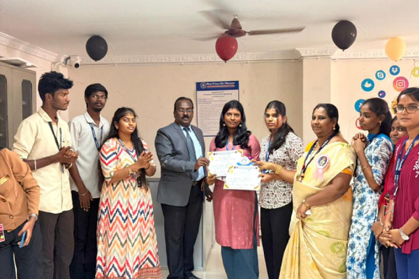 The department commends their dedication, innovation, and teamwork, which earned them this recognition along with a Cash Prize and Memento. This proud moment not only highlights their individual excellence but also brings laurels to our institution.