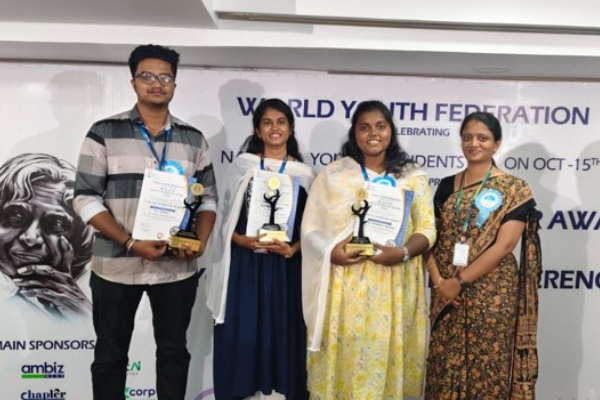 The Department of M.Tech Computer Science and Engineering (5-Year Integrated) proudly congratulates Hasumathi Lakshmi G, Lakshitha, and Sabari R L (Batch: 2022–2027) for winning the prestigious Dr. Abdul Kalam Innovation Project Award presented by the World Youth Federation on 15.10.2025.